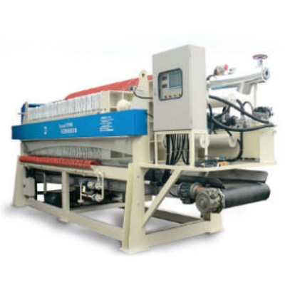 利用蒸汽或熱水在濾板內(nèi)加熱使濾餅中所含無(wú)法壓榨之水分汽化,同時(shí)利用真空泵浦將汽化之水氣及含在污泥餅中的自由水完全抽取,經(jīng)熱交換器使還原成水排放。在此同時(shí),必須使濾室內(nèi)保持負(fù)壓狀態(tài)達(dá)到-500mm/Hg(此時(shí)水的相對(duì)沸點(diǎn)約在70℃),待泥餅中的水分汽化并完全脫離泥餅時(shí),壓濾機(jī)濾板自動(dòng)開啟,干燥污泥餅即掉落輸送帶裝入太空包或原料/污泥斗,其程式100%全自動(dòng)控制。